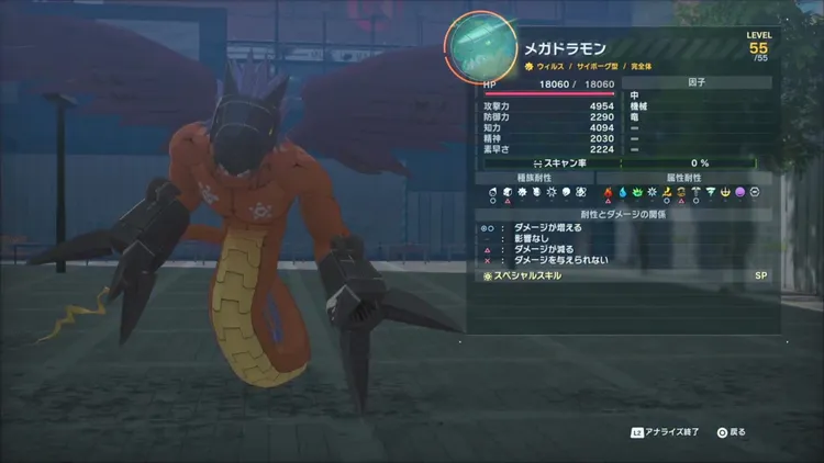![]() | 完全体 サイボーグ型 ウイルス 蛮勇 中 機械 竜 ステータス Lv 55 HP 18060 攻撃 4954 防御 2290 知力 4094 精神 2030 素早さ 2224 種族耐性 ◯ △ - - - - - 属性耐性 △ - - - ◯ △ ◯ - - - - |