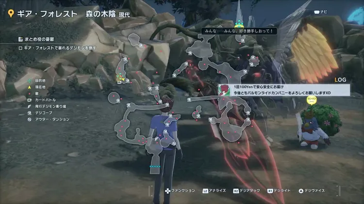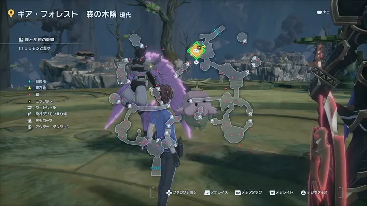 ララモンは、ギア・フォレスト 森の木陰 現代のマップ右上にいる。