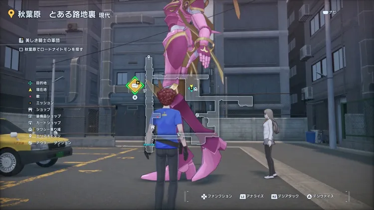 ロードナイトモンは、秋葉原 とある路地裏 現代にいる。会話後、戦闘が発生する。