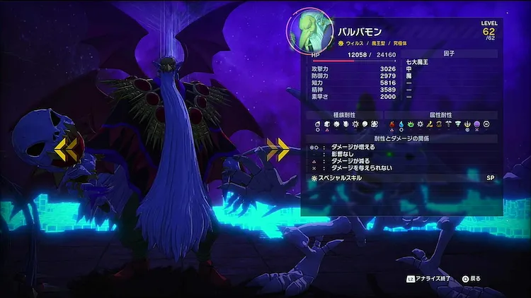 バルバモンは戦闘中にキャラクターリバースを使用して、種族や属性の相性を逆転してくることがある。
