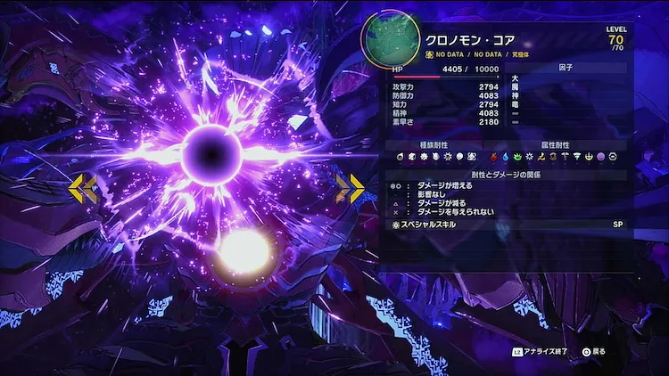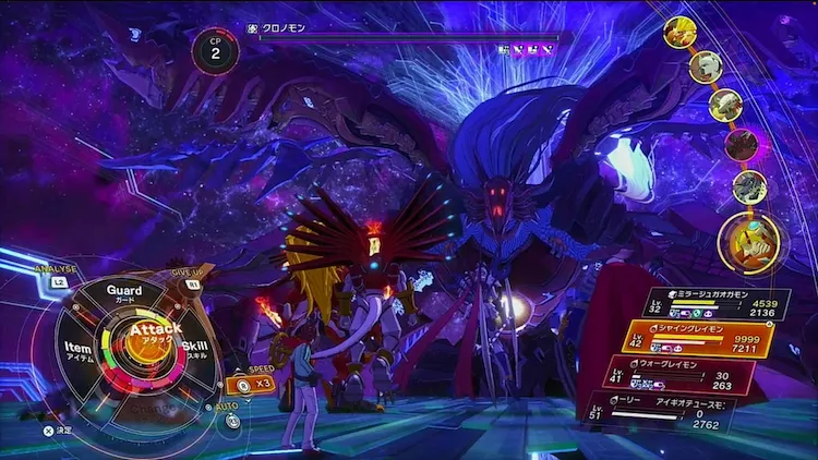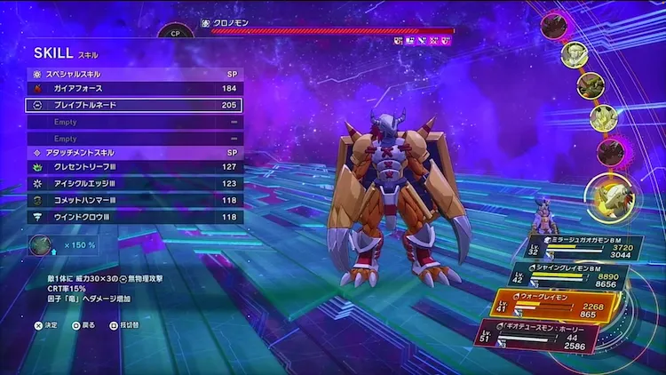 クロノモン戦ではバフ/デバフや回復などを行えるデジモンが1体いると戦闘が楽になる。