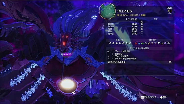 デジモンストーリー タイムストレンジャーのボス「クロノモン」について掲載しています。ステータスや耐性、攻略ポイント、おすすめデジモンをまとめていますので、デジモンストーリー タイムストレンジャー(PS5/XBOX/Steam/PC)の攻略にお役立てください。