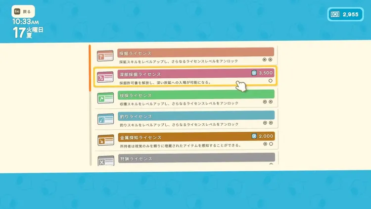 深部採掘ライセンス Lv1取得後、フレッチと会話すると「採掘許可書」(ディープマインの入口)が設置できるようになる。