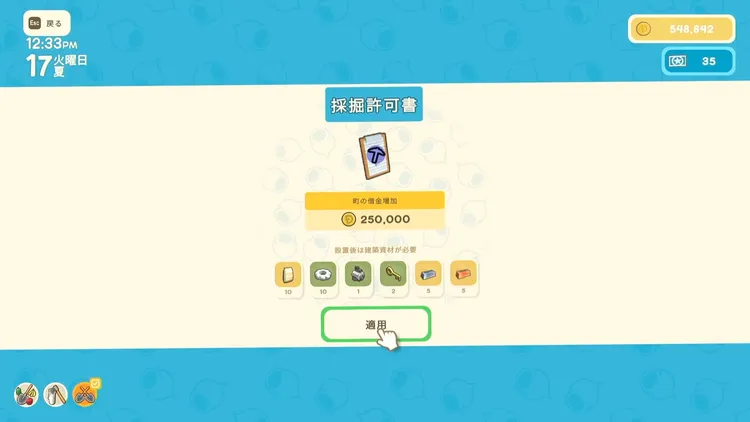 また、許可書の設置には250000ディンクが必要なので、支払いを済ませよう。