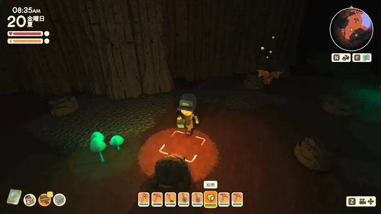 ディープマイン内には、地上では見られない虫や魚が生息している。図鑑埋めや博物館寄贈のために虫取り網と釣り竿を用意しておこう。