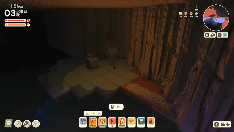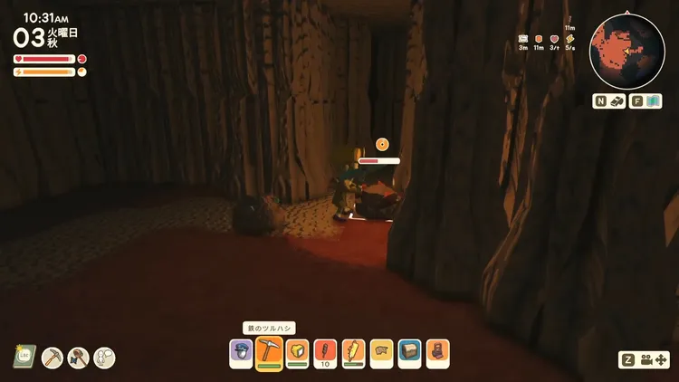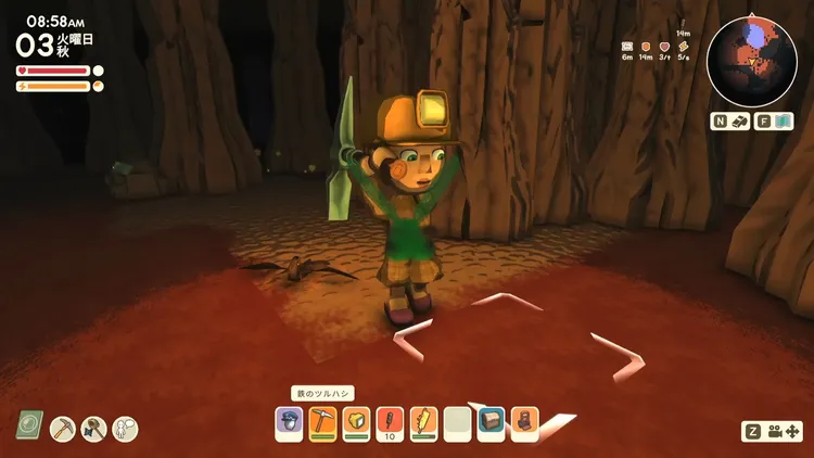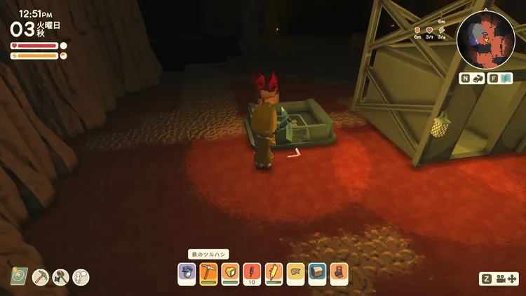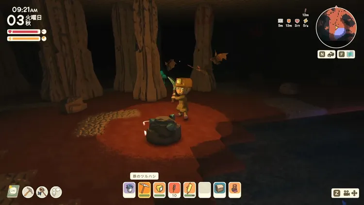 ディープマイン内は、鉱石の採掘や石の壁の破壊などにツルハシを多用する。性能の良い「鉄のツルハシ」を数個用意しておくのがおすすめだ。