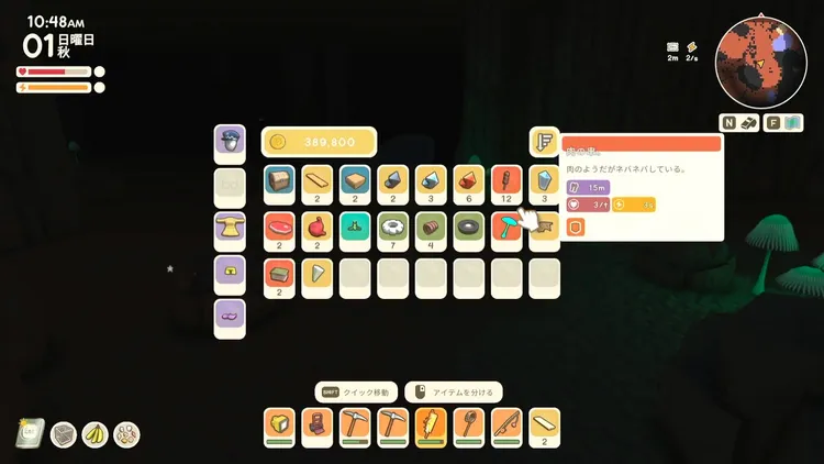 ディープマインでは、戦闘や採掘といった行動を頻繁に行う。体力/スタミナ回復や採掘や攻撃にバフがかかる料理を食べておくのがおすすめだ。