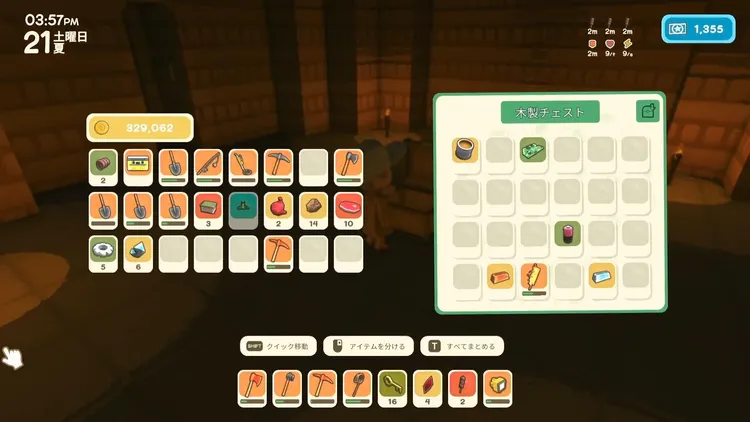 探索が終わったら必ず地上に持ち出す必要があるため、なるべく多くのアイテムを運べるように台車と木箱(チェスト)を用意しておくのがおすすめ。