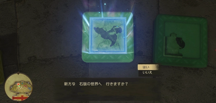 洞窟を道なりに進む途中で、2階入口付近の分かれ道に「ふしぎな石板・赤」が置かれているので回収しておこう。