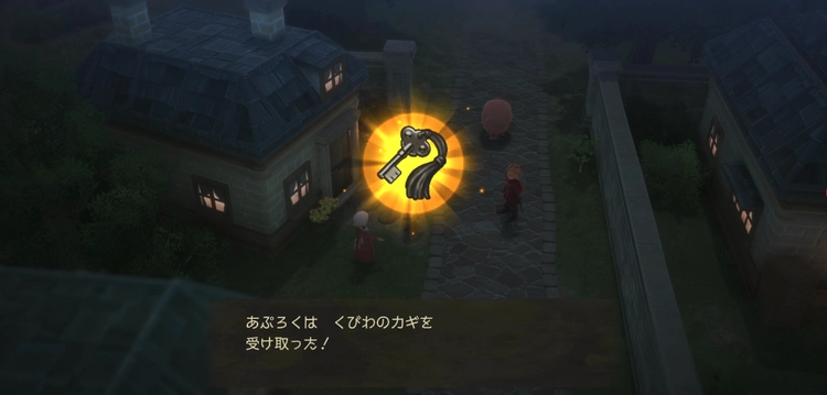 町を出歩いている3名と会話すると、最後の人物から「くびわのカギ」を貰える。