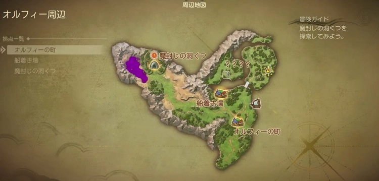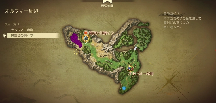 オルフィーの町での用事が済んだら魔封じの洞窟に向かおう。