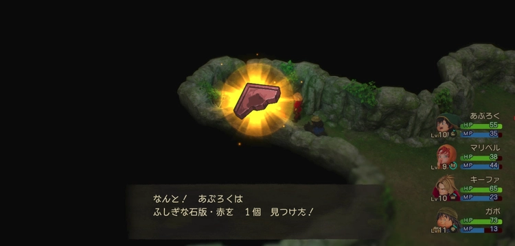 魔封じの洞窟・1階の途中で「ふしぎな石版・赤」が落ちているので必ず回収。