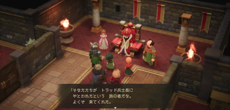 扉の前にいる兵士に話しかけることでフォロッド城内部へ入れる。城内の階段を進んだ先に王様がいるので話しかけよう。