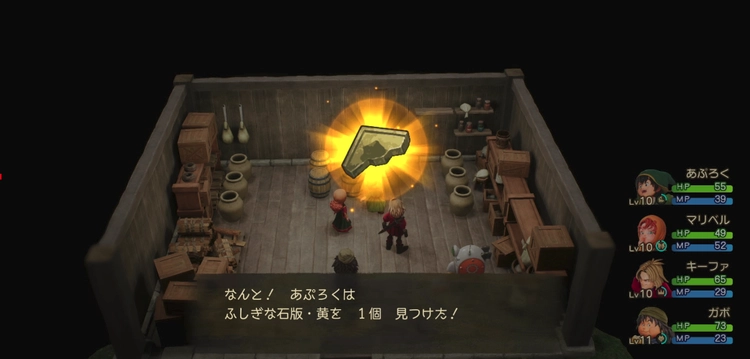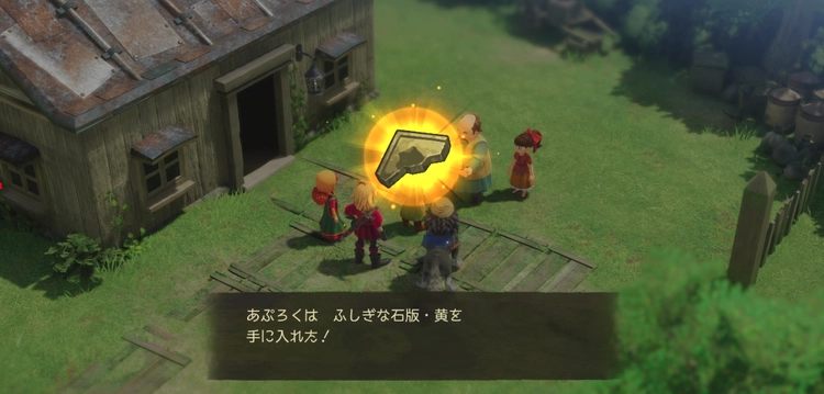隣の小屋に「ふしぎな石版・黄」があるので忘れずに回収。