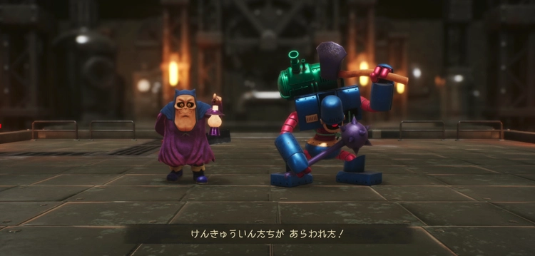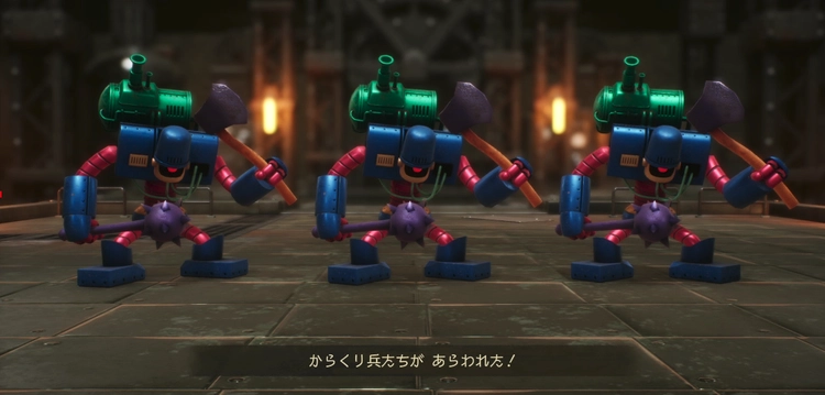 奥にいるマシンマスターに話しかけると、一旦からくり兵3体との戦闘が始まる。