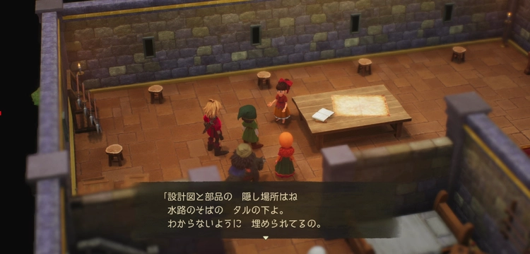 フォロッド城にある南東の部屋にいるエリーに話しかけるとイベントが進行、からくり研究所に自動的に移動となる。