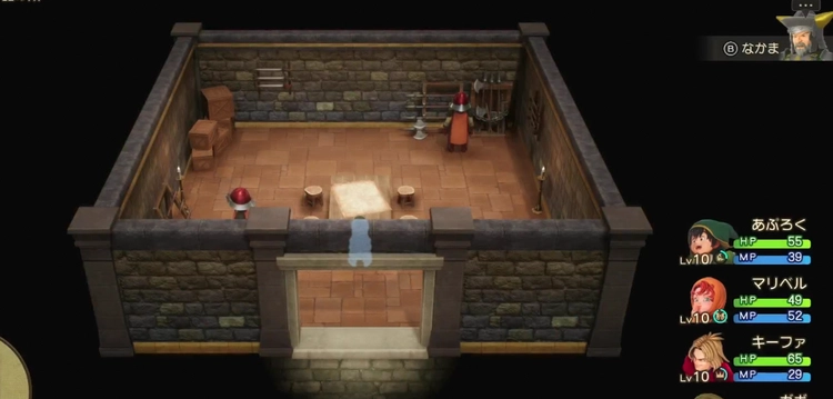 地下1階は真ん中にある通路が正規ルート。地下2階にて「けんきゅういん」と「からくり兵」との戦闘。戦闘前後で女神像から回復しておこう。