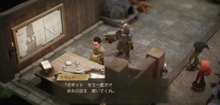 詰め所の反対側にある宿舎でゼボットと会話しよう。