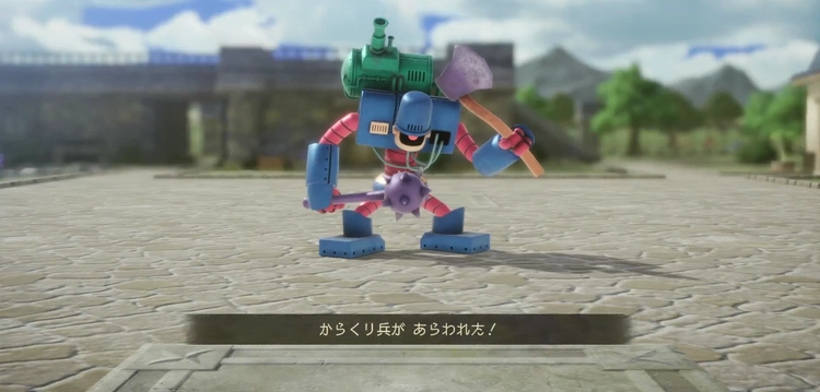 町を出ようとするとイベントが発生し、流れで「からくり兵」と戦うことに。