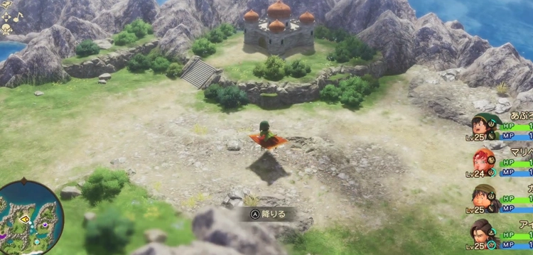 さっそく魔法のじゅうたんを使用(ショートカット上)して、メザレの村から北東にある「神の兵のほこら」へ空を飛んで移動しよう。