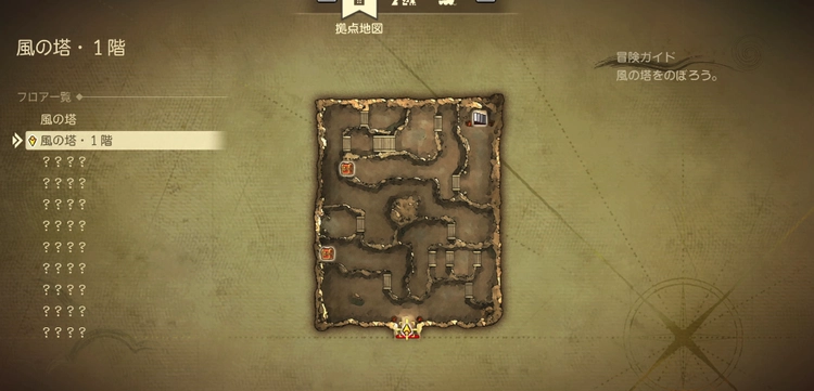 部屋にある紋章に近づくと、風の迷宮エリア1に移動。