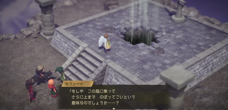 南にある聖風の谷に向かい、橋を渡った先を進むとイベントが発生。その後、族長に家でセファーナに話しかけよう。