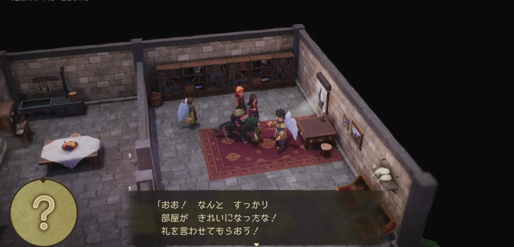 部屋を片付けるように言われるので、部屋内にあるツボを全て破壊した後で再度族長に話しかけよう。