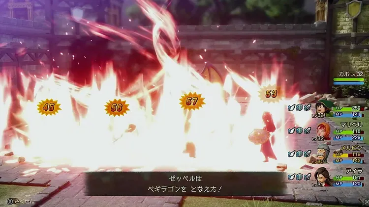 ゼッペルは「ベギラゴン」や「メラゾーマ」といった高レベルの呪文を使用する。大ダメージを受けやすいため、HPは常に100以上を保っておきたい。