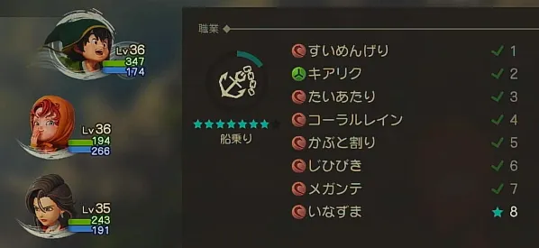 主人公 | 船乗り パラディン | 船乗り:6 パラディン:7 ・ベホマラーを全体回復 ・スクルトで全体の守備力アップ ・キアリクで味方の睡眠状態を解除 |