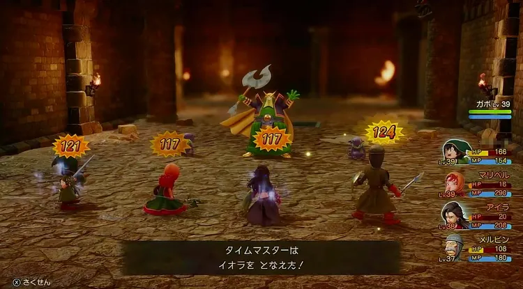 タイムマスターは高ダメージの呪文を与えてくる。特に最初だとマキマキを含めて複数回の全体攻撃を受けるため、全体回復可能キャラは多めにいれておこう。