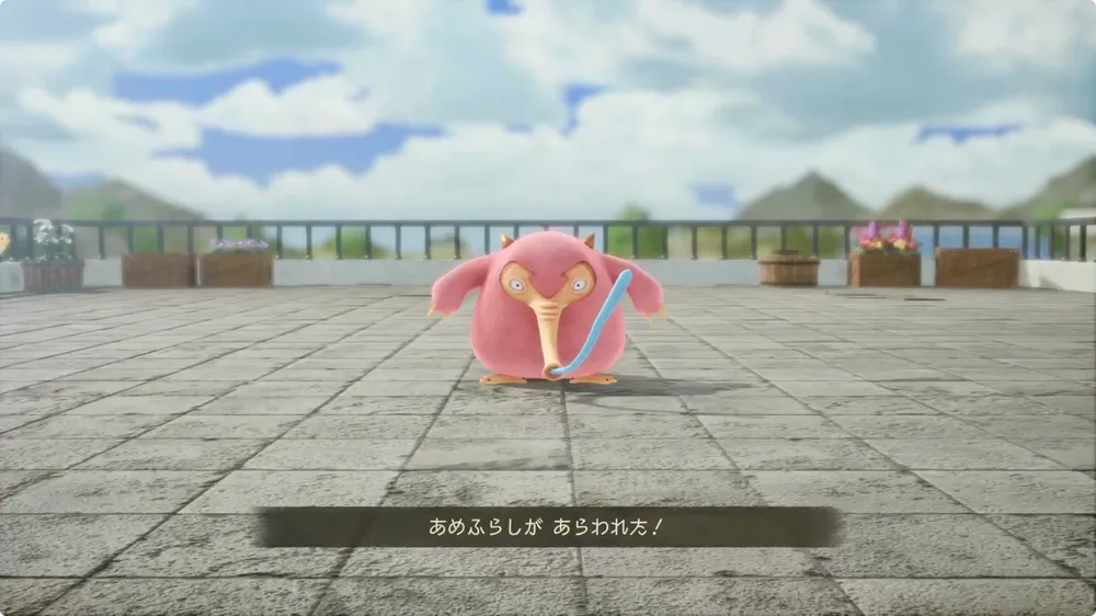 あめふらしに話しかけると戦闘になる。2回行動の麻痺が厄介なため、HP回復や状態異常回復の手段は必ず確保しておこう。