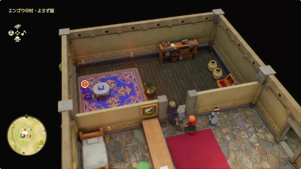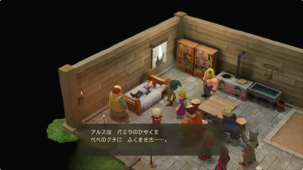 村長の家で話しかけた後はよろず屋に移動しよう。占いを行う場所にパメラがおり、話しかけると「パメラのひやく」が手に入る。