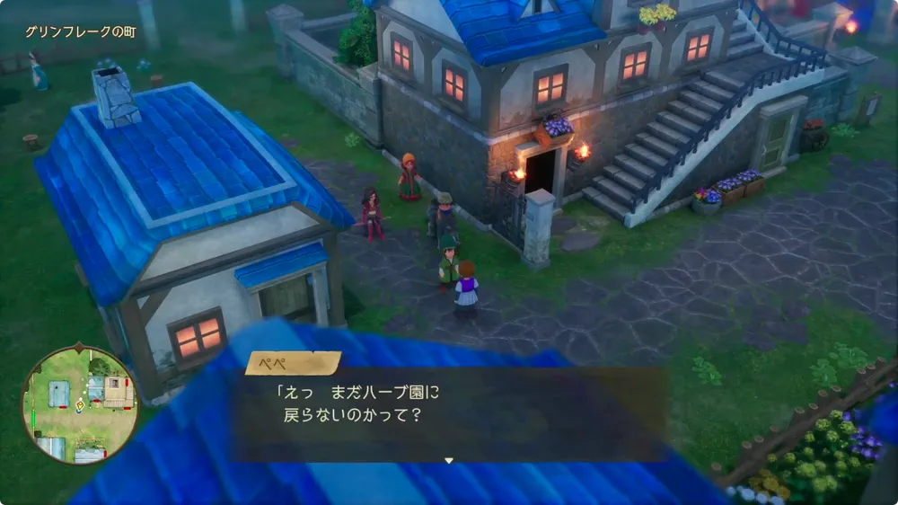 町へ入るとイベントが発生する。入口にいる庭師と会話をしたら、ハーブ園の民家にいるペペにパメラのひやくを使おう。