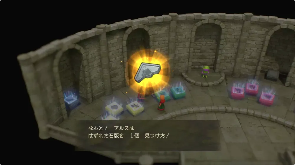 各地で手に入れたふしぎな石板・灰を、左から2番目の台座にはめることでグリンフレークに行くことができる。