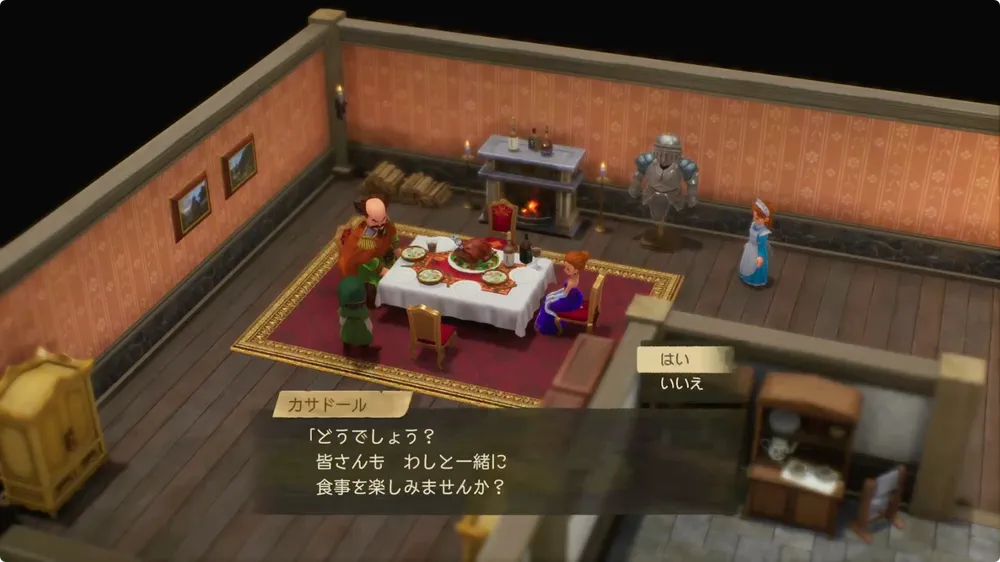 屋敷にいるカサドールに話しかけると一緒に食事をしないか誘われるので、「はい」を選ぼう。