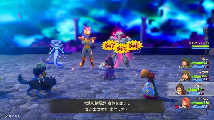 風・水の精霊が倒せていない状態でターンが進行すると、大地の精霊がにおうだちを使ってくる点に注意。