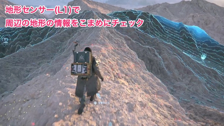 地形センサー(L1)を使うと、周辺の地形の情報を確認できる。