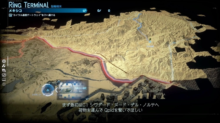 ビジャ・リブレで荷物の納品を済ませ、Qpidの接続を行おう。通信エリアが拡大され、マップに詳細情報が追加される。