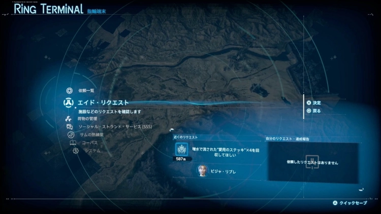 リングメニューから、新たに各施設の住民の要望をまとめた「エイド・リクエスト」を確認することが可能。