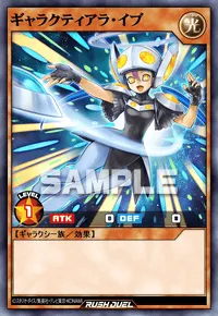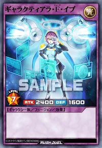《ギャラクティアラ・F・イブ》は墓地の《フュージョン》をデッキの上か下に戻す事でドローしつつギャラクシー通常モンスターを蘇生でき、デッキトップに戻せば《フュージョン》を再利用できる。フュージョンモンスターはいずれも特定のモンスターと光属性ギャラクシー族が素材なので、連続フュージョン召喚も狙える。