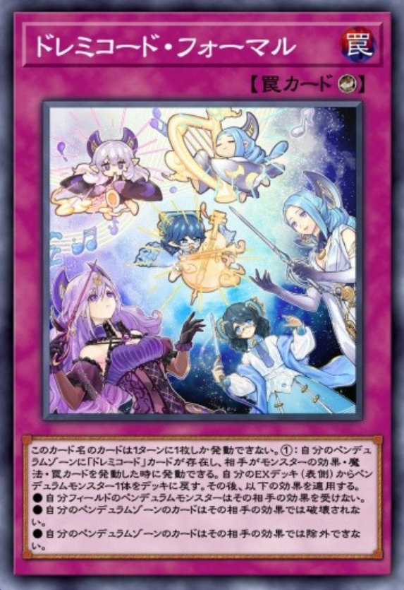 | 《閃刀姫-ジーク》は除去・自己強化効果で「閃刀姫デッキ」のアタッカーとして使いやすく、場を空けて「閃刀」魔法カードの発動条件を満たすのにも役立つ。「ドレミコード」には発動無効効果を持つ《グランドレミコード・クーリア》に加え、強力な新規魔法・罠カードも実装された。 |