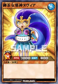 《御茶女邪神ヌヴィア》は自分の場に水族モンスターが3体居る場合にデッキトップを墓地へ送って僅かながら全体強化でき、更に墓地の《アメガロポリス》を回収できる。スキルで《アメガロポリス》を墓地へ送っておけば結果的にスキル発動からカードを2枚増やす事ができ、アドバンテージを稼げるぞ!
