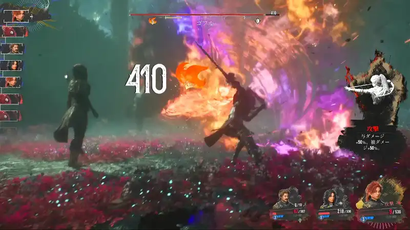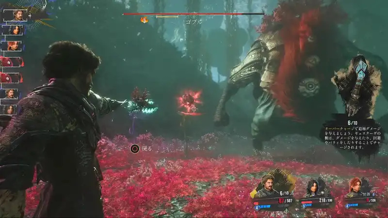 ゴブルはHPが低下すると花を咲かせ、一定ターン経過後に花を吸収して自己強化を行う。