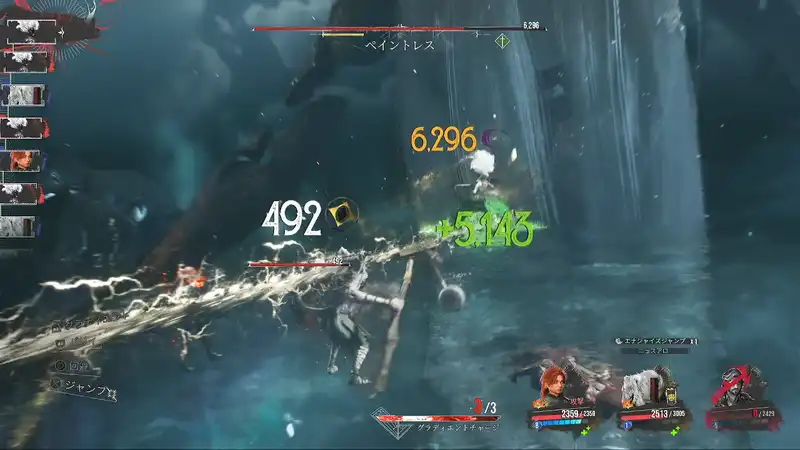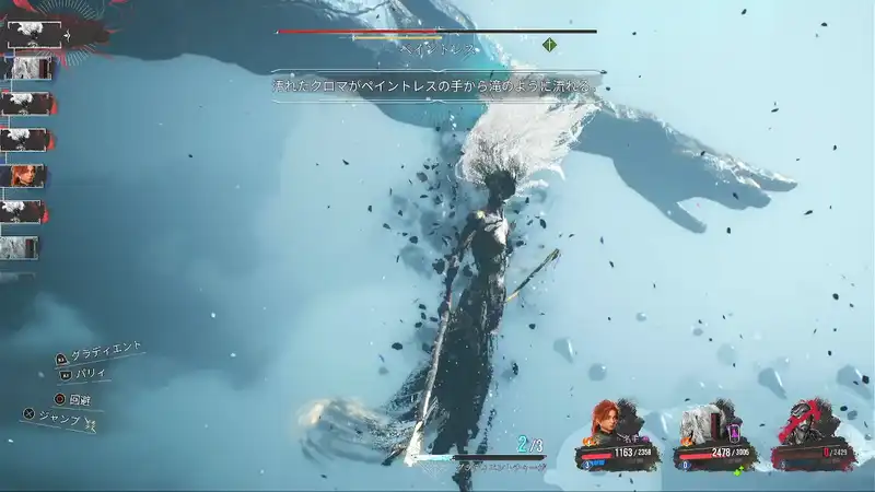 ペイントレスの「クロマ波を放つ」は発生の早い連続攻撃のため、パリィをミスしやすい攻撃でもある。