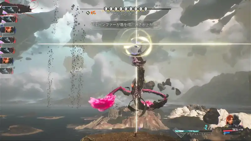 AP吸収で合計20以上のAPを吸収すると、セルパンファーは爆発して全体に麻痺付与効果を持つダメージを与える。