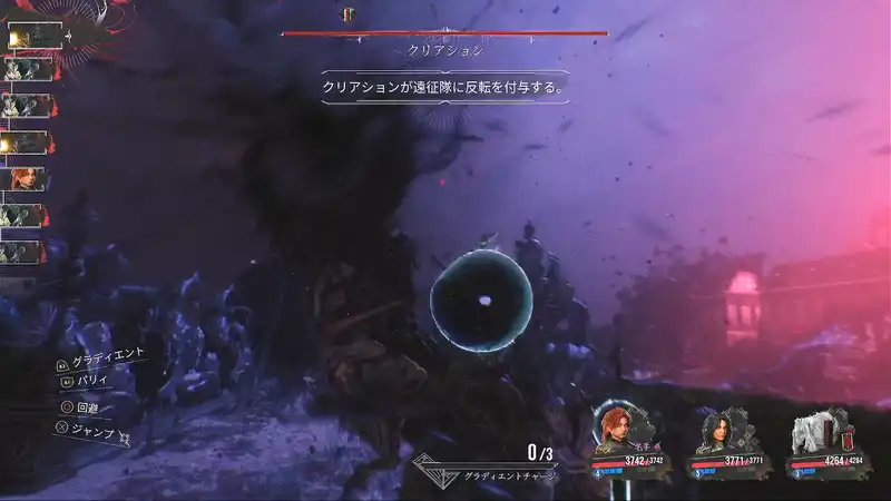 クリアションは初回行動時に、バトルキャラ全員に反転の状態異常を付与してくる。