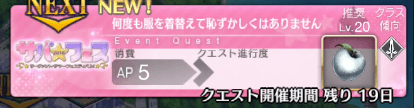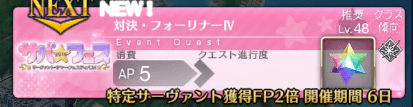 ストーリークリア後に解放される特殊なバトル。何度も戦いゲージを削る一人版レイドのような仕様で、クリアで宝具レベル上げ用の水着ジャンヌオルタを獲得できる。日付や昼夜で難易度が変化するので挑むタイミングに注意。