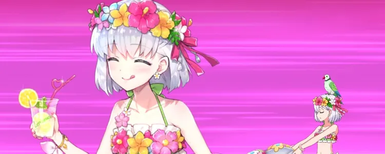 | プロフィール3 | ○マカラ・フローティング:A 夏の水遊びにうってつけのスキル。 カーマはインド神話における海獣マカラに関連する存在だとも言われる。 マカラは水神ヴァルナやガンジスの女神ガンガーの乗騎(ヴァーハナ)でもあり、すなわち水を操る力を持つ。 夏の彼女が乗り回すワニやサメに似た形の謎フロートは、心地好いぷかぷかを演出すると共に、いかなる荒波も乗り越え、ときには水上バイク以上の運動性能を発揮するという。 ○真夏の海のマーラ:EX 魔王の夏の本気を示すスキル。 マーラ・パーピーヤスの夏バージョンとも言える。 普段のやる気のないダウナーな部分が減少し、 行動が若干ながらアクティブ化。 普段なら「面倒くさいから嫌です」とジト目で拒否されるようなことも、まあ、夏ですし? の一言でやってくれるようになる、かも。 |