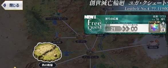 FGOのユガクシェートラのフリークエスト「西の断層(祈りの広場)」について紹介している記事です。周回情報をはじめ、ドロップ情報や敵編成を掲載していますので、ユガクシェートラのフリークエストを攻略をする際にぜひお役立てください。