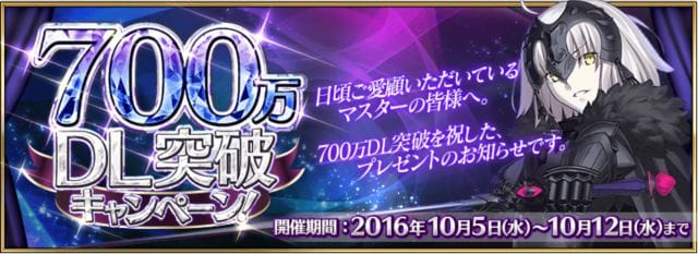 700万DL突破を記念して「★5(SSR)ジャンヌ・ダルク〔オルタ〕」が期間限定で登場!